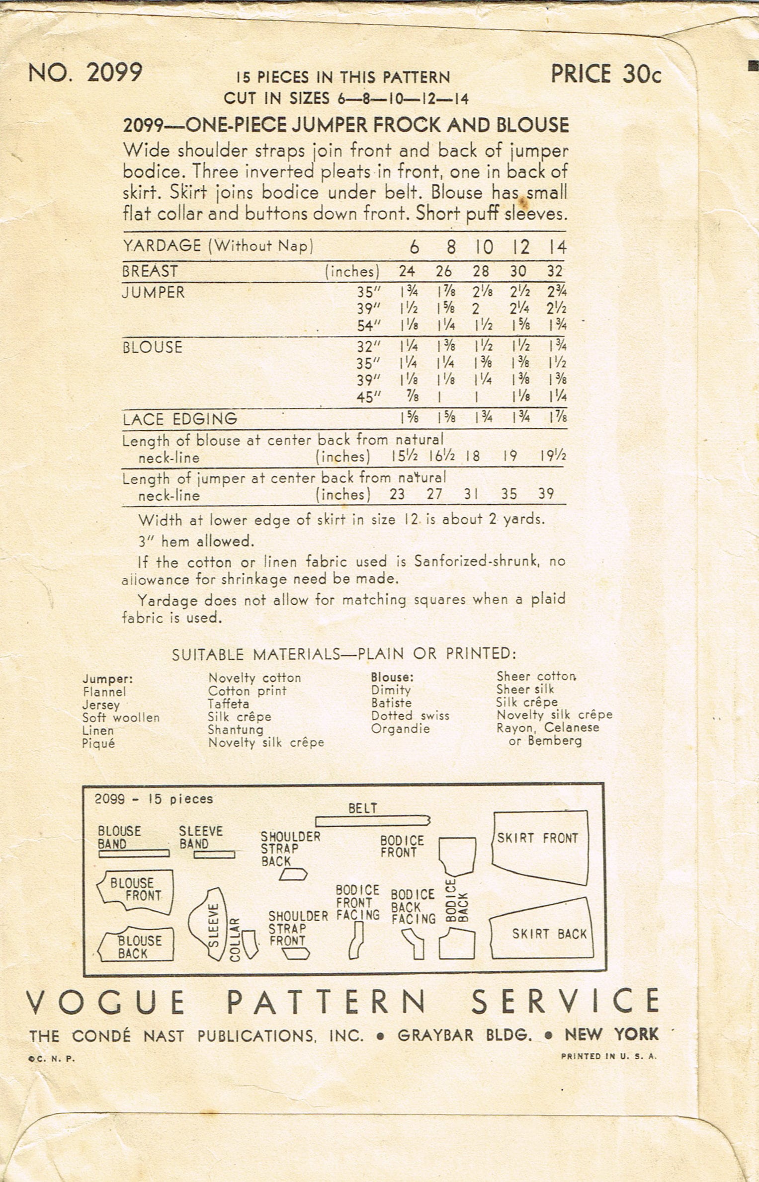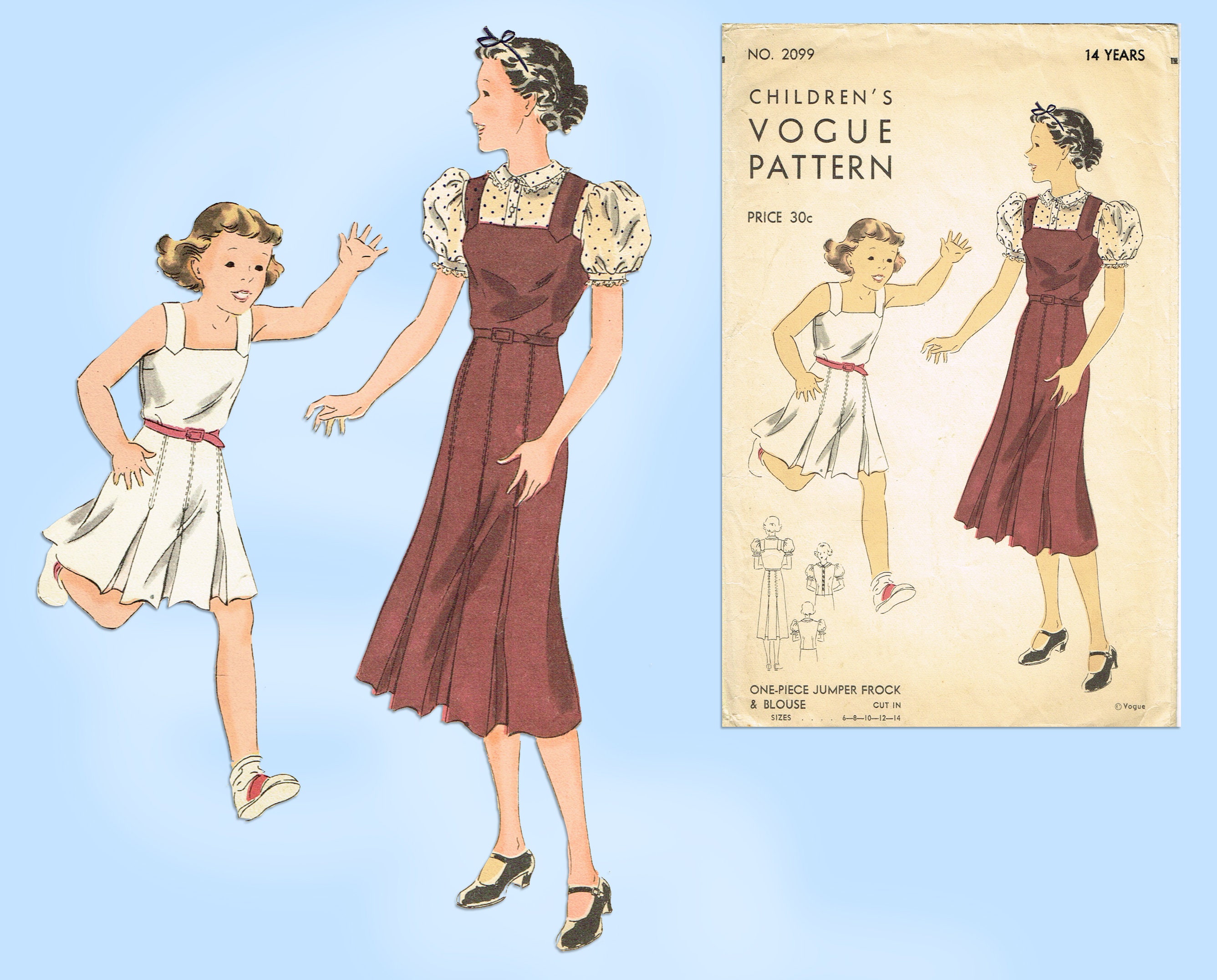 1930s Vintage Vogue Sewing Pattern 2099 Teen Girls Dress Or Etsy